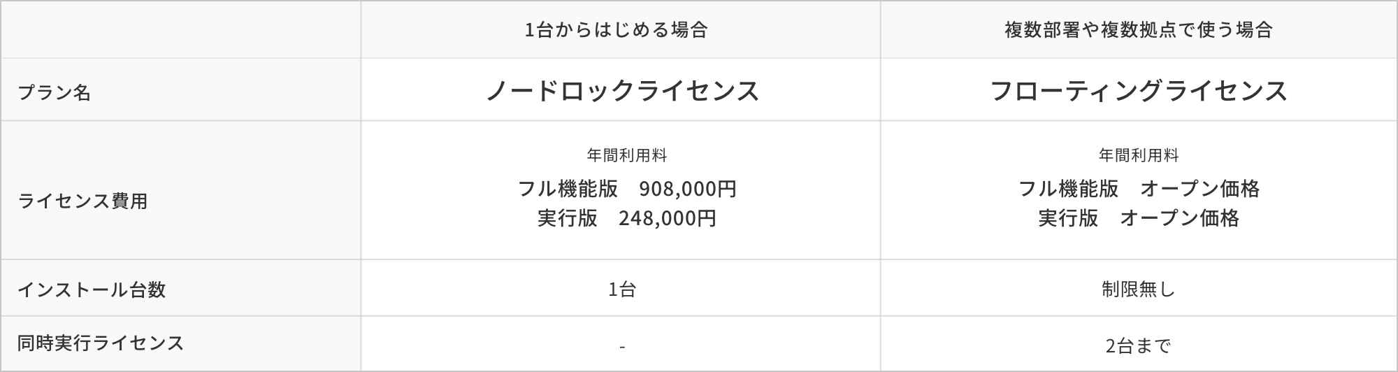 ※ ノードロック版ではインストールするPCごとにライセンスが必要となります。