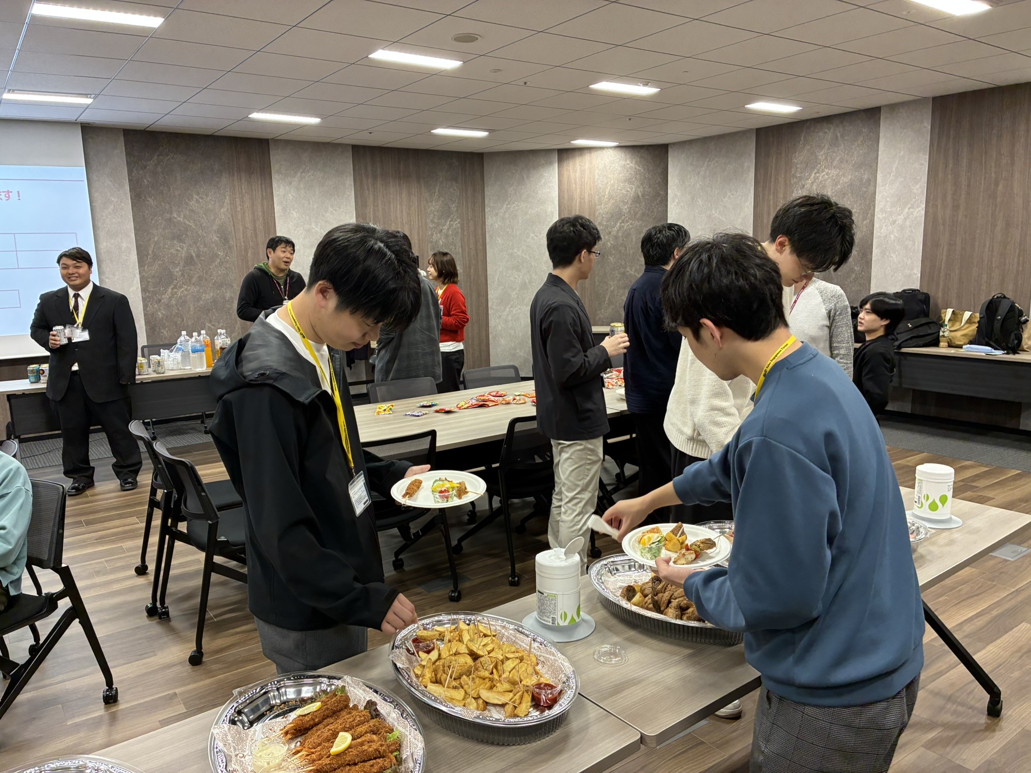 演習中は真剣な表情で取り組んでいた学生の皆さんも、この時間にはリラックスした笑顔を見せてくれました。メンターをはじめ社員との交流を通じて、技術だけでなく、人とのつながりの大切さも感じていただけたと思います。