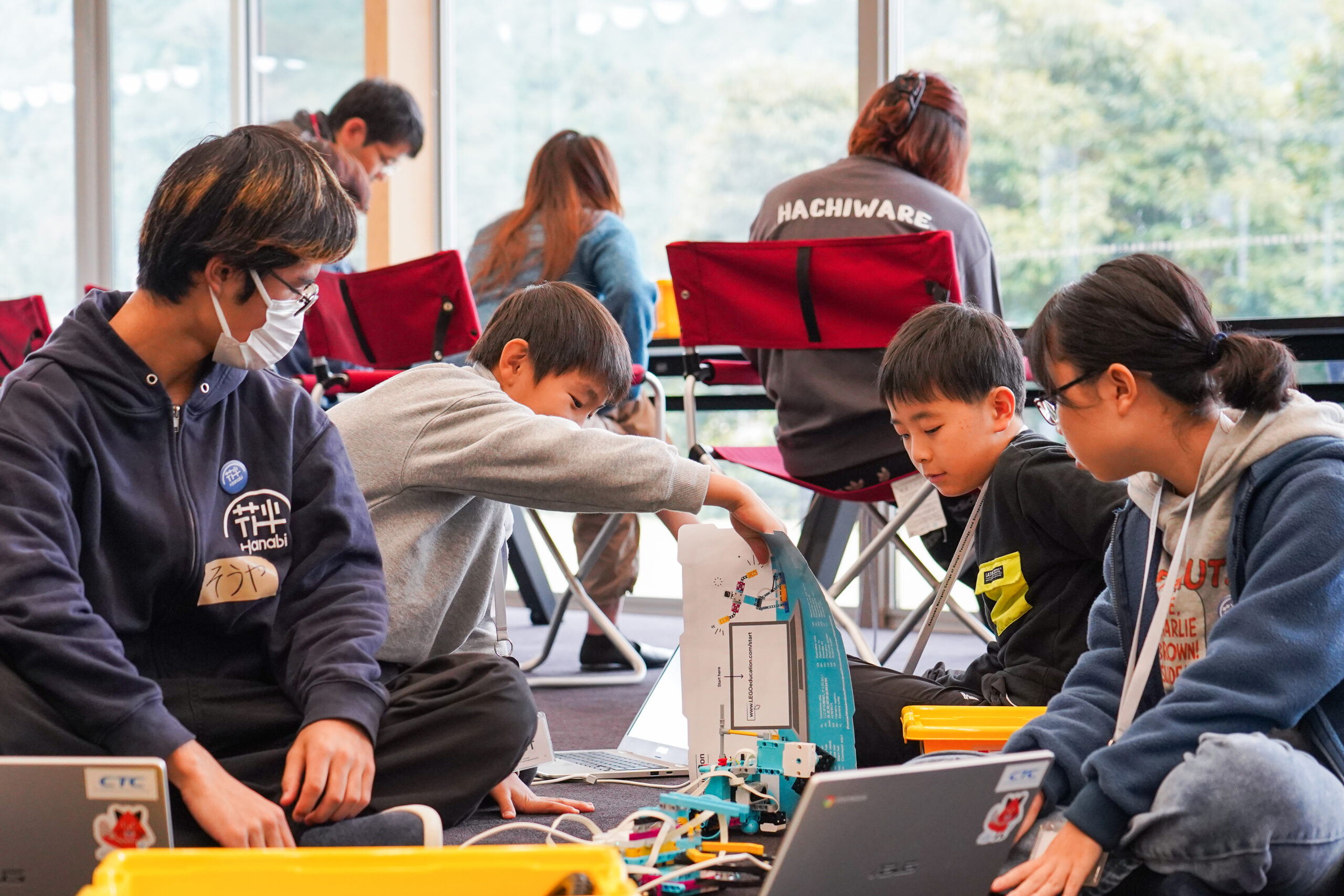 子どもたちは各チームに分かれ、ロボット作りに没頭します。SI&C社員とHanabiメンバーがプログラミング部分で丁寧にサポート。子どもたちの「できた!」という声が会場に響き渡ります。