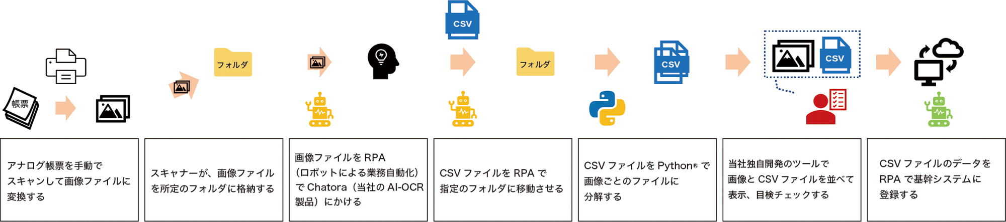 AI-OCRを活用し、帳票の画像データより文字を読み取り、当社開発ツールで目検チェックした上で基盤システムに登録する事例をご紹介いたします。