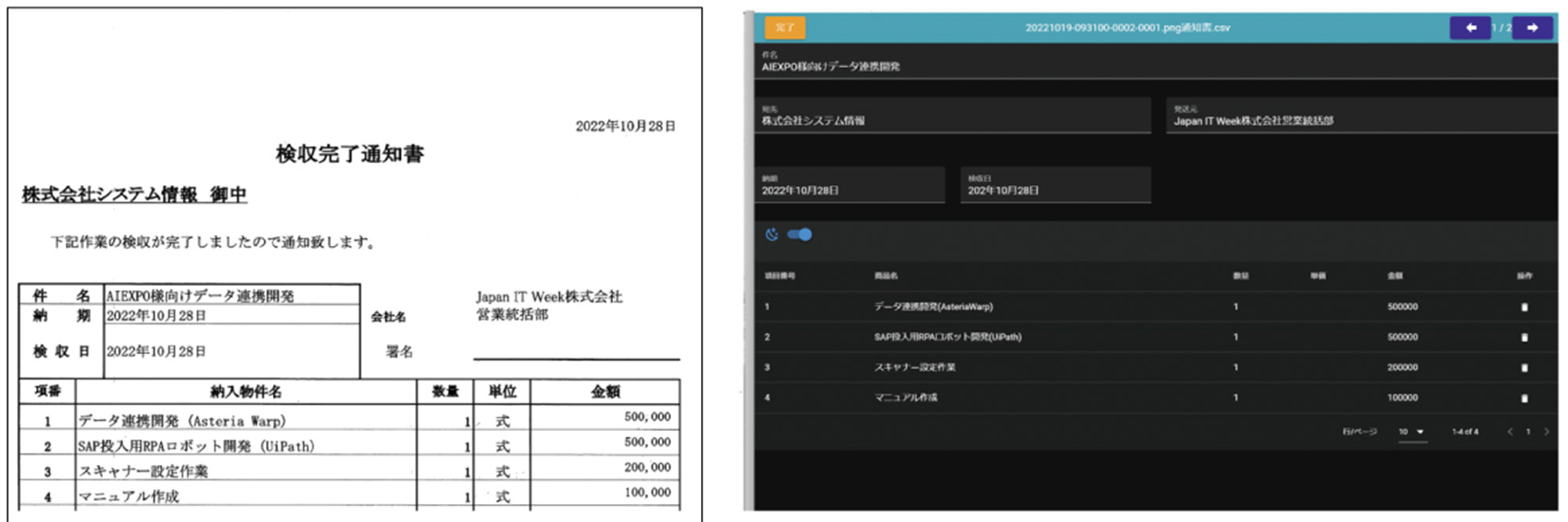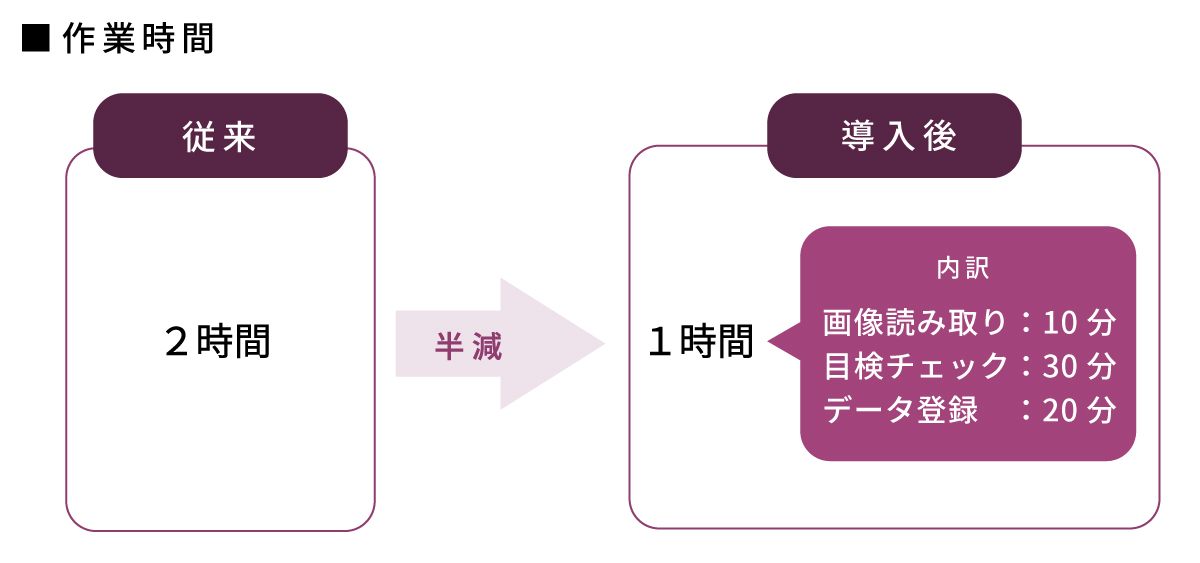 AI-OCRによる読み取りと目検チェックによって、高い精度で作業時間を半減することが見込まれます。