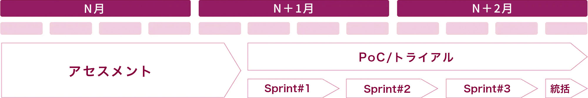 アセスメント、及びPoC/トライアルの実施期間は3か月を基準としております。