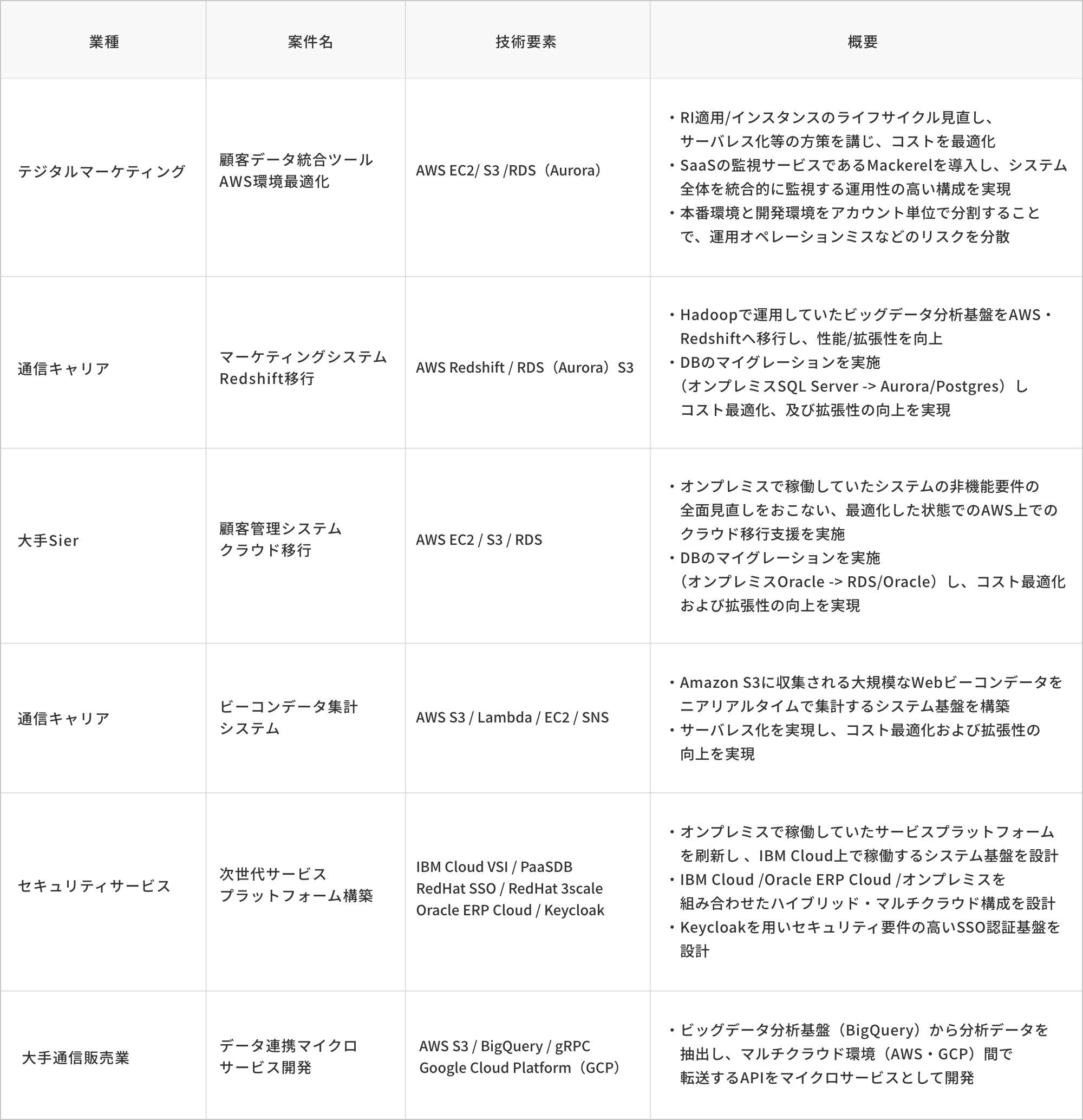 当社のクラウド活用支援サービス対応事例