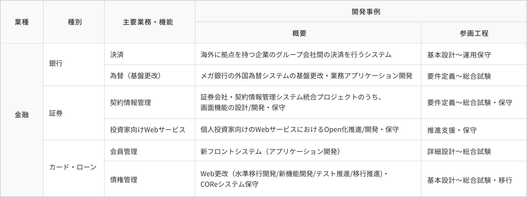 銀行から証券会社をはじめとし、クレジット会社など様々な金融機関のオンラインシステムの構築・運用に携わっています。
