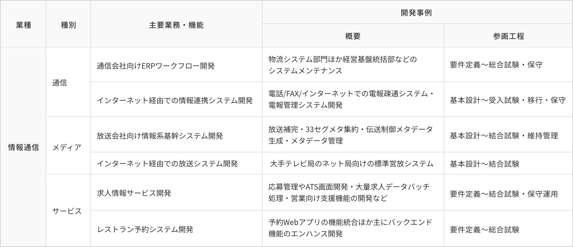 また人材サービスのような、時代が変わっても普遍的に必要な事業のシステム開発にも長く安定的に携わってきております。