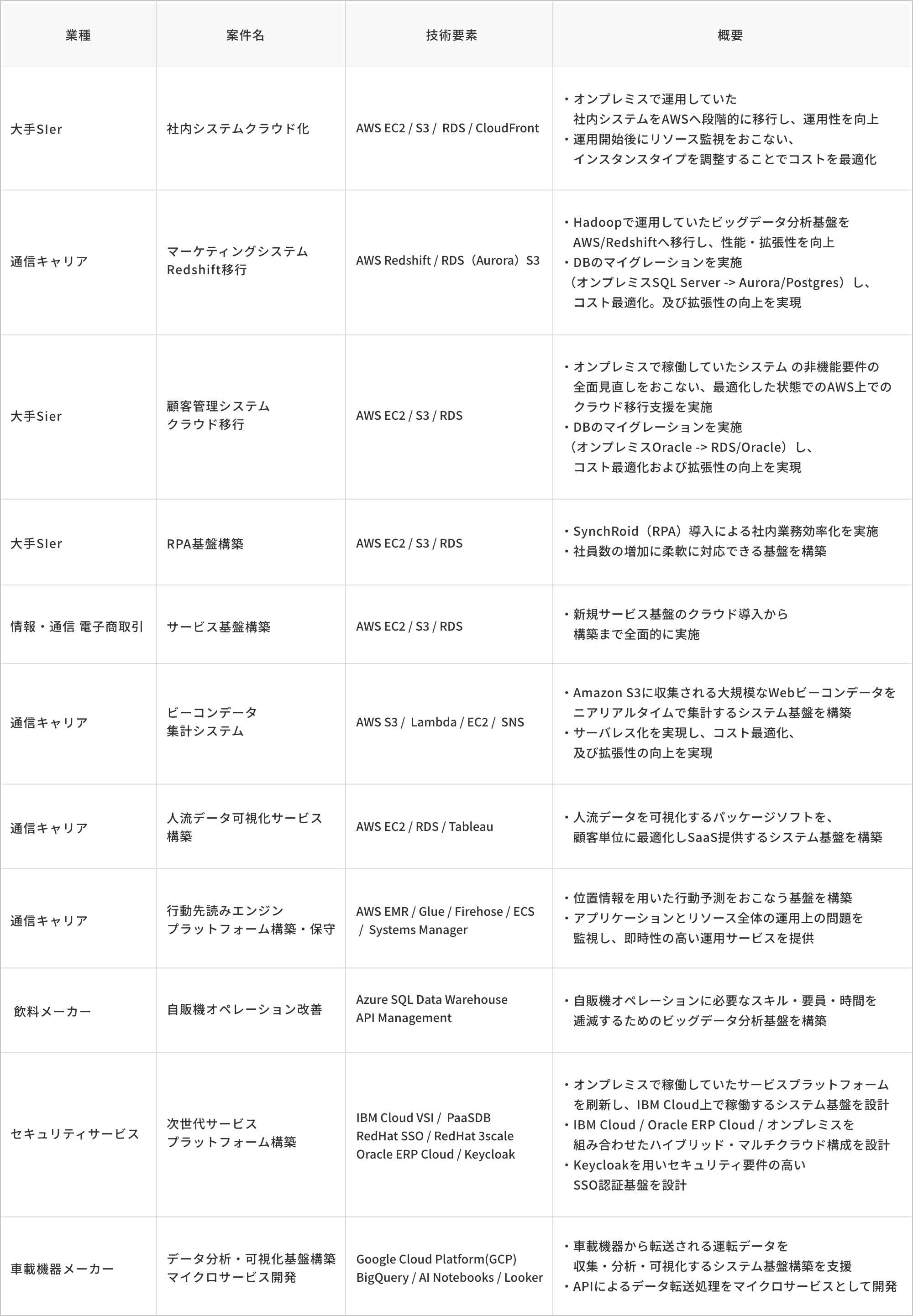 当社ではクラウドベンダーが提供するサービスを複数取り扱っております。また、それぞれのサービスの資格を保持するエンジニアが多数在籍しており、スムーズなシステムの導入が可能です。それぞれのサービスを組み合わせたマルチクラウドにも対応しております。