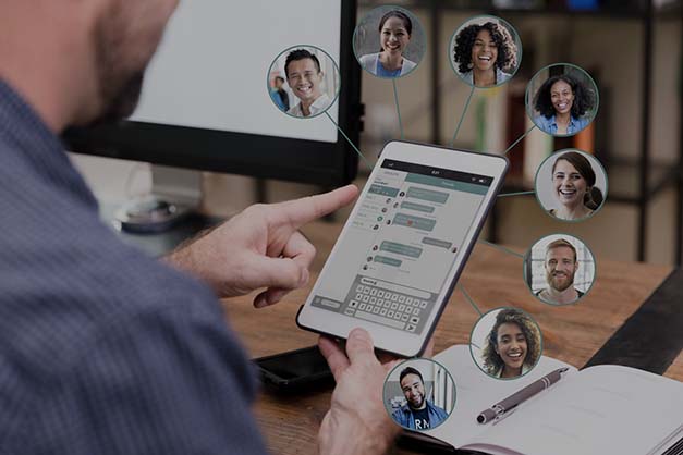 できあがったシステムはSNS機能により、チーム内での業務を見える化。