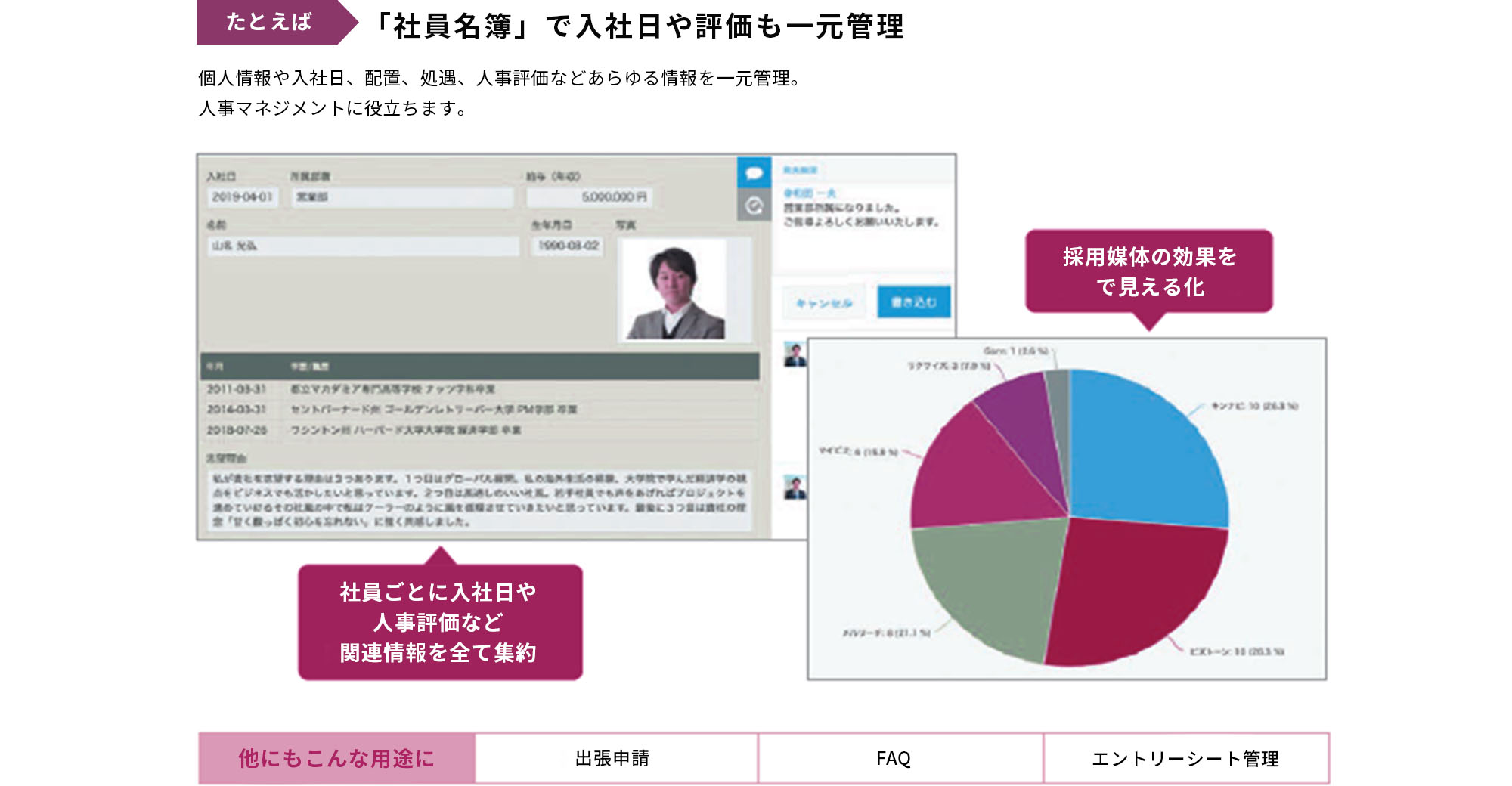 業務システム(アプリケーション)に溜まったデータに、指示やコメントなどのコミュニケーションを紐付け。
