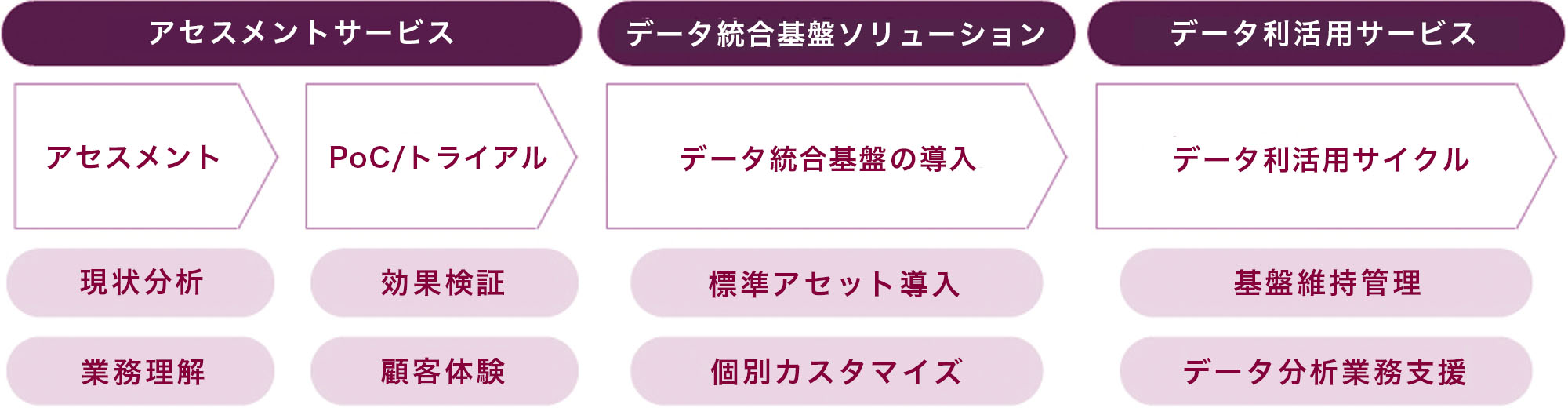 当社は、アセスメントから持続的なデータ利活用に至るまでの「ジャーニー」を描き、お客様と共に歩みます。