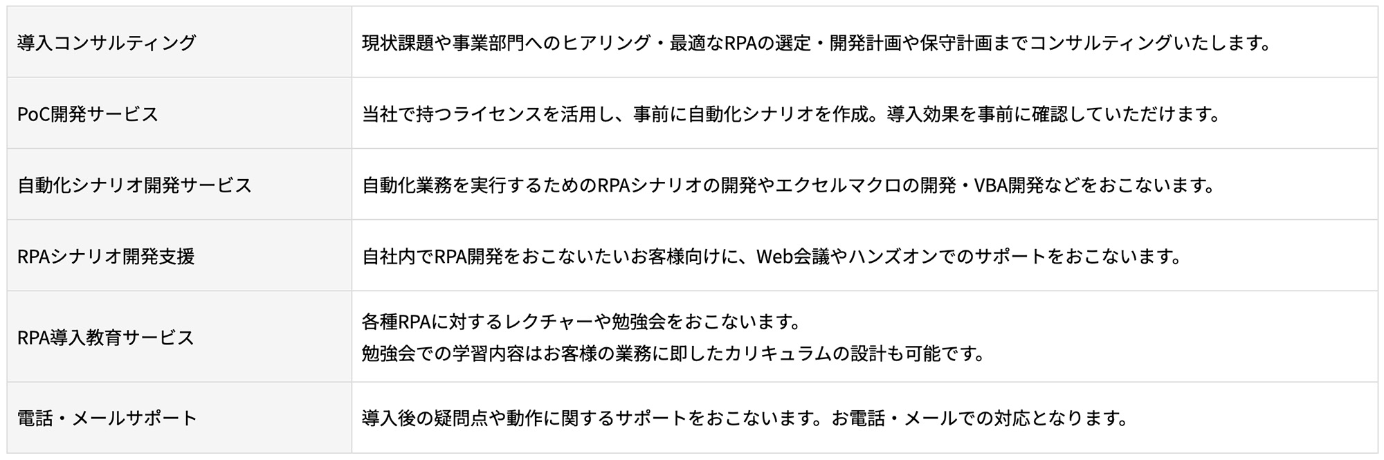 また、社内にプログラミングスキルを持つ人がいない場合でもノンコードでロボットを活用できるライセンスも準備されているため、まずはできるだけ低コストで自動化業務を始めたいお客様に最適なRPAとなります。